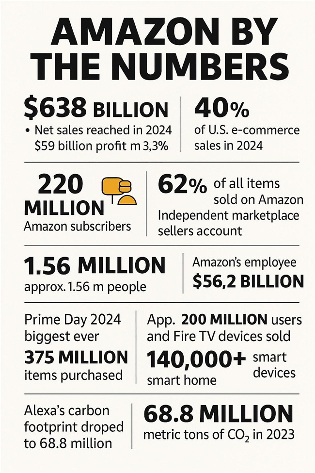 1、《Amazon: Facts and Statistics》written by Daniel Shvartsman,updated November 12, 2025