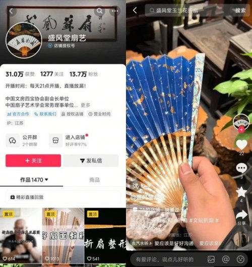 在持续内容输出、稳定直播频率与货架承接能力之上,大量中小商家们建立起了稳健的经营能力。从苏扇非遗品牌@盛风堂扇艺 身上,我们可以看到这一经营模式的效果。