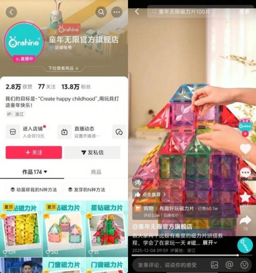 浙江玩具品牌 @童年无限官方旗舰店,长期深耕海外市场,年出口额达3亿元,却在国内缺乏品牌影响力。